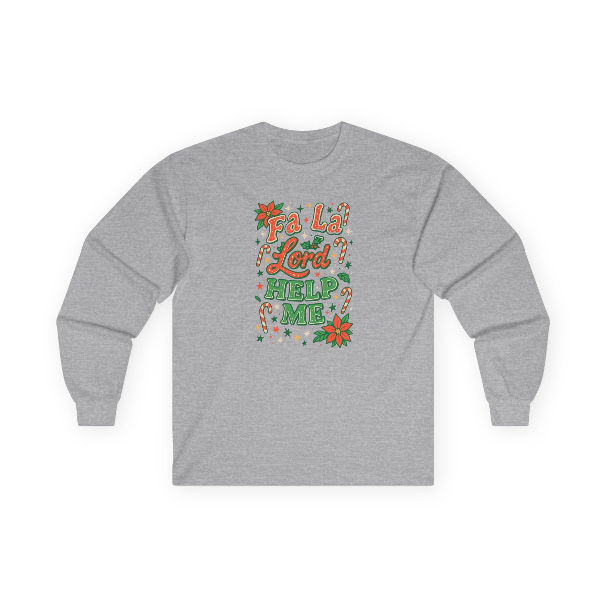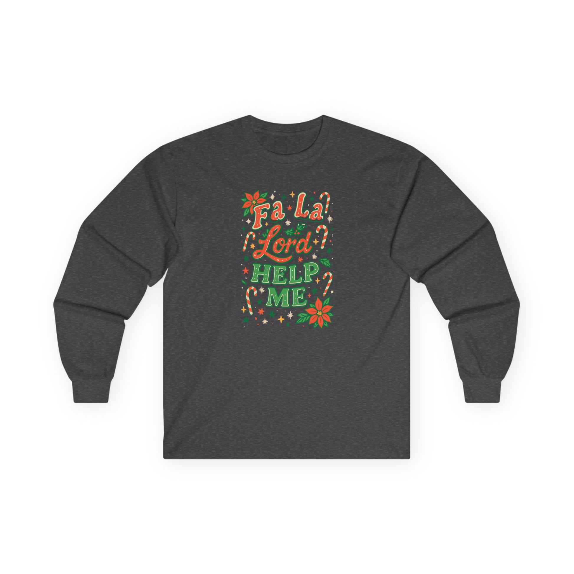 This long-sleeve tee carries a playful, cozy energy—soft vintage-weight cotton and a hand-lettered, festive design that reads like a holiday hum of good humor and gentle plea. The muted heather base and warm red-and-green artwork give it a worn-in, homey look that layers easily under jackets or stands alone on chilly evenings. Wear it when you’re trimming lights, sipping something spiced, or trading stories by the tree; it feels lived-in right away and invites smiles without shouting. The classic cut and ribbed collar keep the silhouette familiar, while the tubular knit and shoulder tape mean the shape holds up through many washes and gatherings.